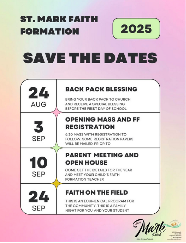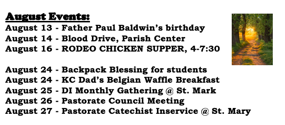 We are still collecting SCHOOL SUPPLIES through August 3rd! Book bags, tissues, pencils, crayons, notebooks, colored pencils, and note cards are all useful as the students head back to school next month. Look for the tub in church to place your donations in. Thank you in advance!!